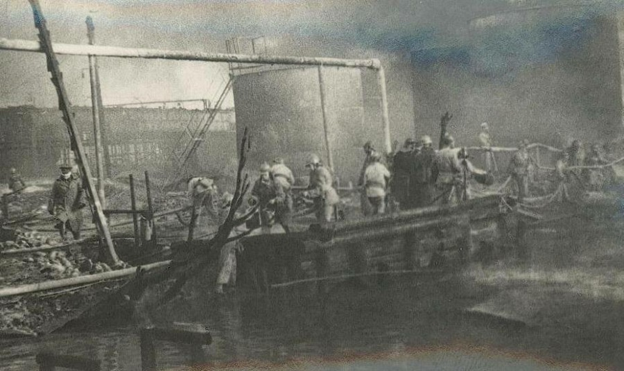 Одним из самых масштабных и сложных пожаров за время Великой Отечественной войны и блокады Ленинграда стало возгорание на нефтебазе «Красный Нефтяник» 3 мая 1943 года. Эта трагедия стала суровым испытанием для пожарных осажденного города, продемонстрировав их отвагу, выдержку и мастерство. В тот день, в 14:06, вражеские снаряды обрушились на Кировский и Московский районы. Пожарные были готовы к вызову, но в 14:22 артиллерия противника внезапно перенесла огонь на территорию нефтебазы, расположенной у Октябрьской железной дороги. Здесь хранились жизненно важные для Ленинграда запасы нефтепродуктов: бензин, керосин, масло — около 5 тысяч тонн в 46 резервуарах. Первый снаряд попал в цистерну с соляровым маслом, вызвав мощное возгорание. Наблюдатель С. Н. Баранова немедленно подала сигнал тревоги. К месту пожара прибыли две автоцистерны местной команды и две машины 26-й военизированной пожарной части. Огонь удалось быстро локализовать, но обстрел не прекращался. В 14:50 два крупнокалиберн