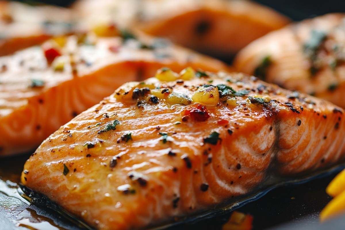Создано на основе запроса: Title: Marry Me Salmon Recipe (contient du poulet comme ingrédient secondaire) | STYLE: Close-up Shot right view