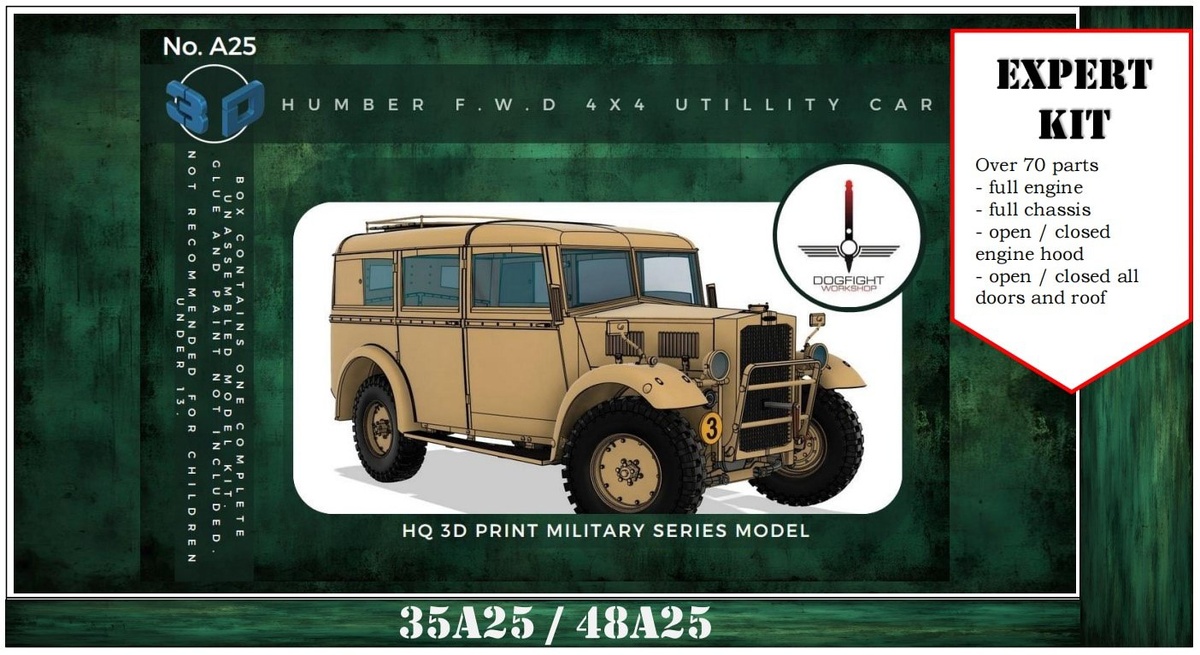Польская Dogfight Workshop выпустила на 3D-принтере модели английского Humber F.W.D 4x4 в масштабах 1/72, 1/48 и 1/35.
