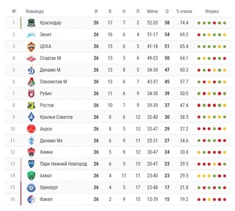 Здравствуйте, уважаемые читатели! Давно не писал свои прогнозы в виду нехватки времени. В этот раз немного нашлись лишние минуты. кому интересно, то прошу ознакомиться! Для начала давайте вспомним турнирную таблицу после 26 тура за 4 игры до окончания сезона. Как мы видим, в прошлом туре уже и Локомотив выбыл из чемпионской гонки. Следующие, на очереди Динамо, возможно и Спартак с ЦСКА уже слетит в ближайшем или последующем туре. По сути, реальный конкурент у ФК Краснодара остался только Зенит. А центральным матчем тура будет Краснодар-Рубин. Все внимание приковано к лидеру чемпионата. Единственная пара, где обе команды находятся в верхней части турнирной таблицы и то Рубин не может претендовать ни на медали, ни даже на и 5 место-велика пропасть в очках. Статистика личных встреч между Краснодаром и Рубином в пользу "быков". Игра будет проходить в Краснодаре при поддержке болельщиков. Краснодарцы больше мотивированы, так как Рубину нет смысла бороться, если только за 6 место попробоват
