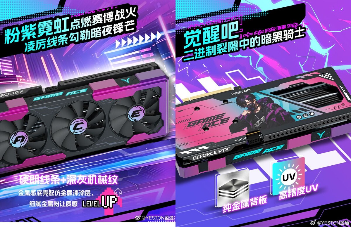 Yeston планирует пополнить ассортимент видеокарт неназванными новинками в линейке Game Ace, сообщает VideoCardz. Скорее всего, речь идёт о GeForce RTX 5060 Ti — на данный момент это единственные видеокарты NVIDIA с 8-контактными разъёмами питания, что соответствует официальному рендеру. Источник изображения: YESTON盈通 в Weibo Новинки получили систему охлаждения с тремя вентиляторами, элементы видеокарты окрашены в чёрный цвет, переливающийся розово-фиолетовый и бирюзовый, есть элементы с подсветкой. Как отмечают в VideoCardz, серия Game Ace раньше была самым дорогим предложением Yeston, однако затем уступила по популярности серии Sakura, которая, похоже, стала самым узнаваемым брэндом Yeston и основным направлением маркетинговых усилий. Компания пока не разместила информацию о новой модели на своём официальном сайте, поэтому подробностей о технических характеристиках или дате выпуска пока нет.