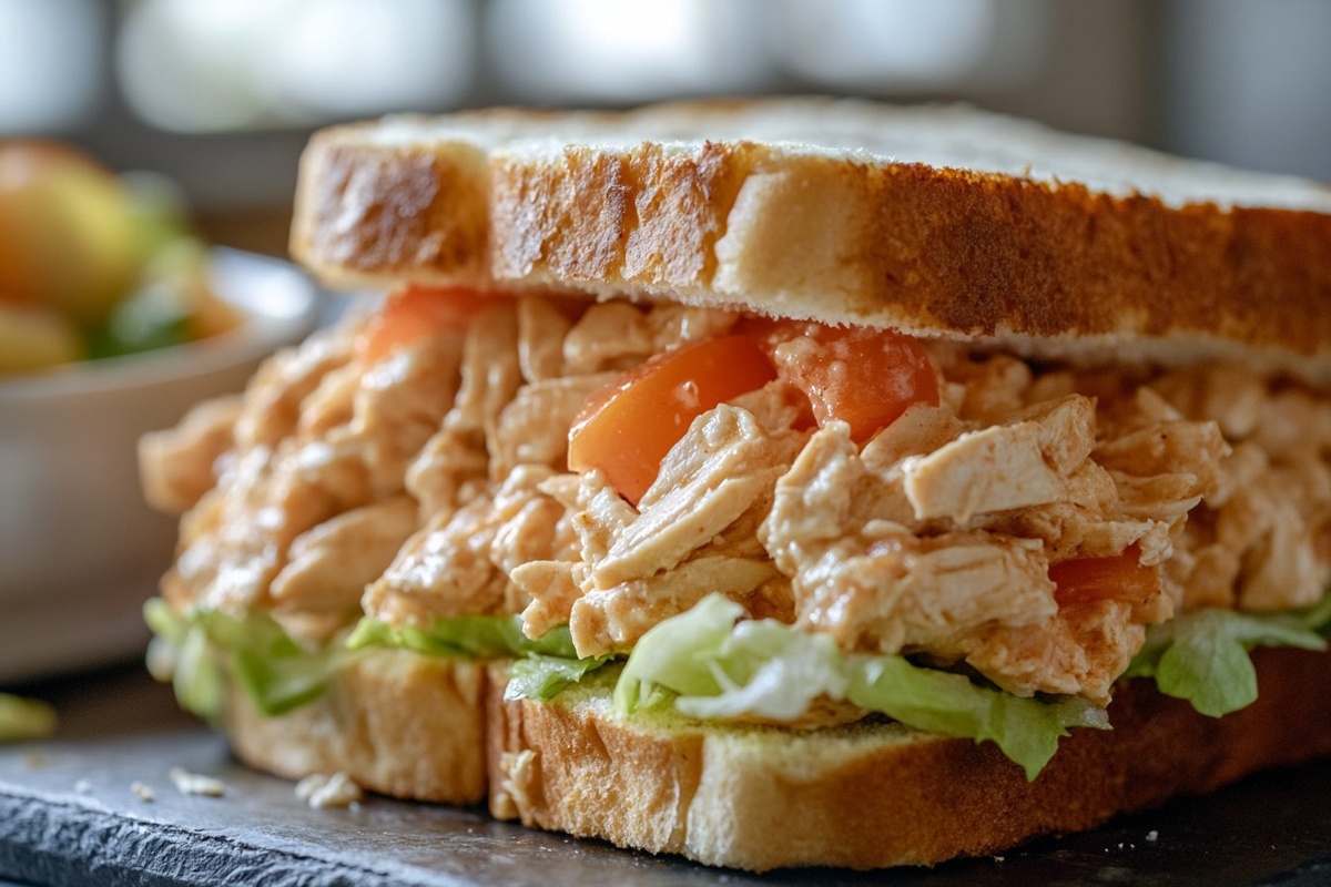 Создано на основе запроса: Title: Crockpot Ranch Chicken Sandwiches | STYLE: Close-up Shot right view | EMOTION: realistic as possible
