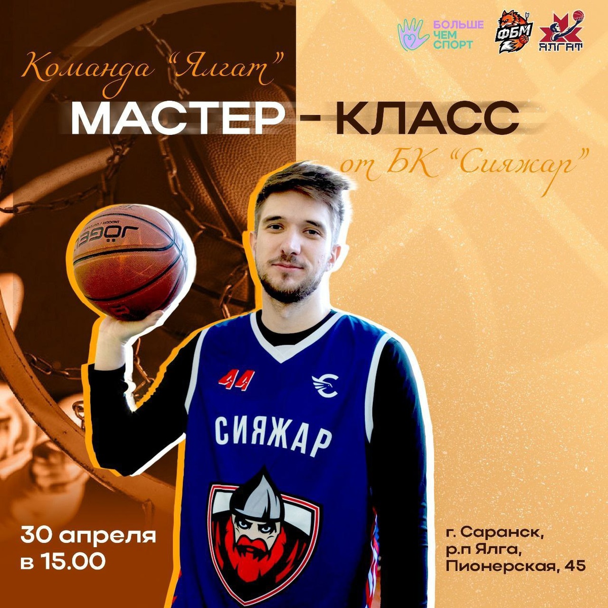 Всех желающих ждём завтра на крутой баскетбольный мастер-класс. Кто проводит? БК «Сияжар» Команда «Ялгат» Где и когда? 30 апреля 15:00 г. Саранск, р.п Ялга, Пионерская, 45.