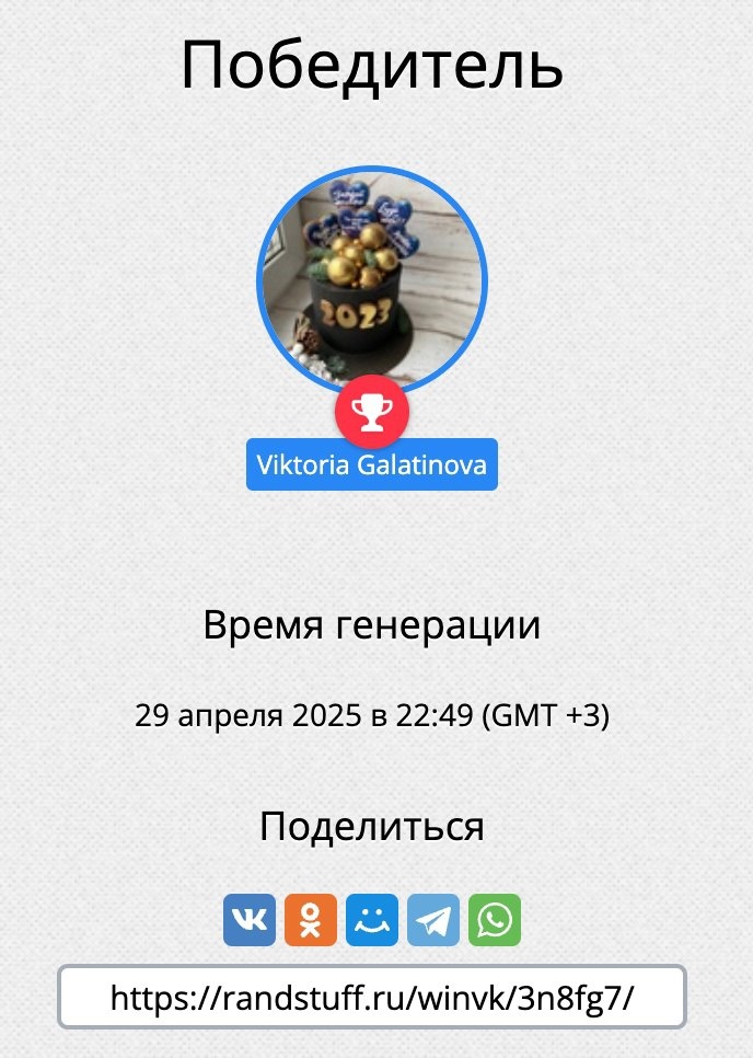Победитель конкурса на шашлычный набор от 8 апреля 2025 года ( Виктория Галатинова