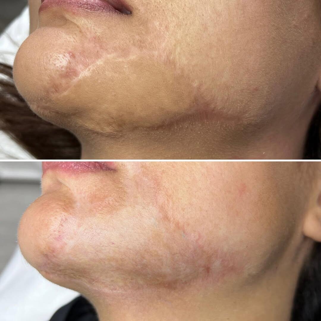 Старый, много-много лет назад пересаженный лоскут “сел”, перестал деформировать левую половину лица, “исчезла” четкая возвышающаяся над основными тканями граница и вся площадь лоскута, его неестественный восковидный цвет, значительно ослаб тяж, тянущий уголок рта, исчезли ощущения “тяги” не только угла рта, но и лоскута. Значит в тканях удалось добиться существенных позитивных перемен, рубцовые деформации теперь имеют бОльшее количество физиологических клеток и волокон, и они будут активно участвовать в предстоящей регенерации… И теперь растушеванный по границам, объему, цвету лоскут и остальные рубцовые образования по левой стороне лица, особенно области век, с наступившими клиническими улучшениями “пойдут” под лазерную коррекцию… И мы будем трепетно ждать, что нам “выдадут” ткани, на какую регенерацию они способны… #ларисарадецкая