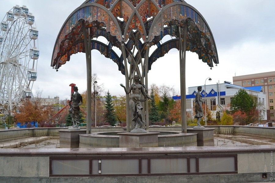 Фонтан «Времена года», обрамленный бронзовыми фигурами девушек, которые символизируют все четыре сезона. Композицию дополняет шатер из разноцветного стекла.