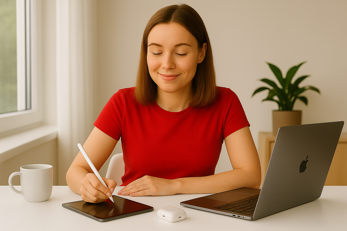 Когда на столе только нужное — ноутбук, ежедневник, кружка — кажется, что задач меньше.