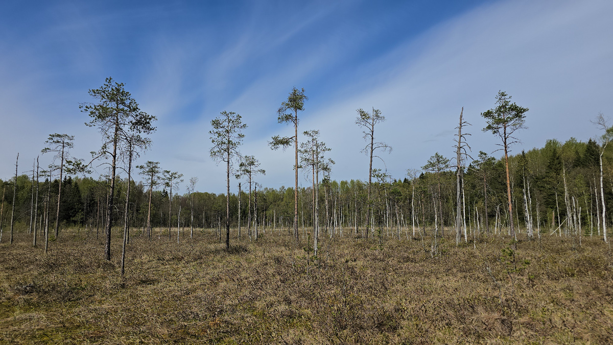 Апрельско-майский поход на болото за клюквой. Пасём с Псом Кубиком Артёма и Машу на лесных полянках