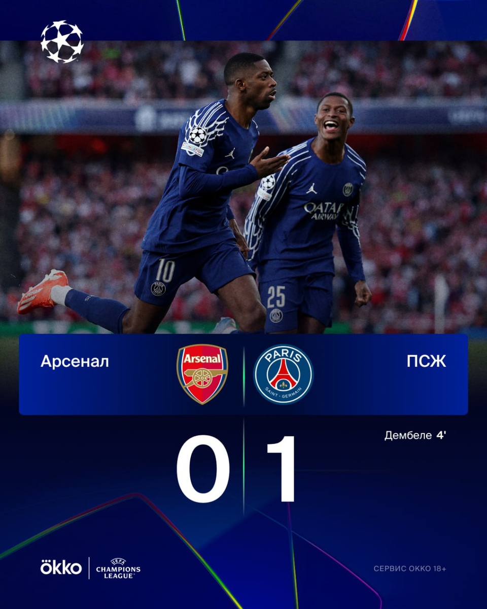 🇫🇷 «ПСЖ» забрал победу в Лондоне. Хватило быстрого гола Дембеле.