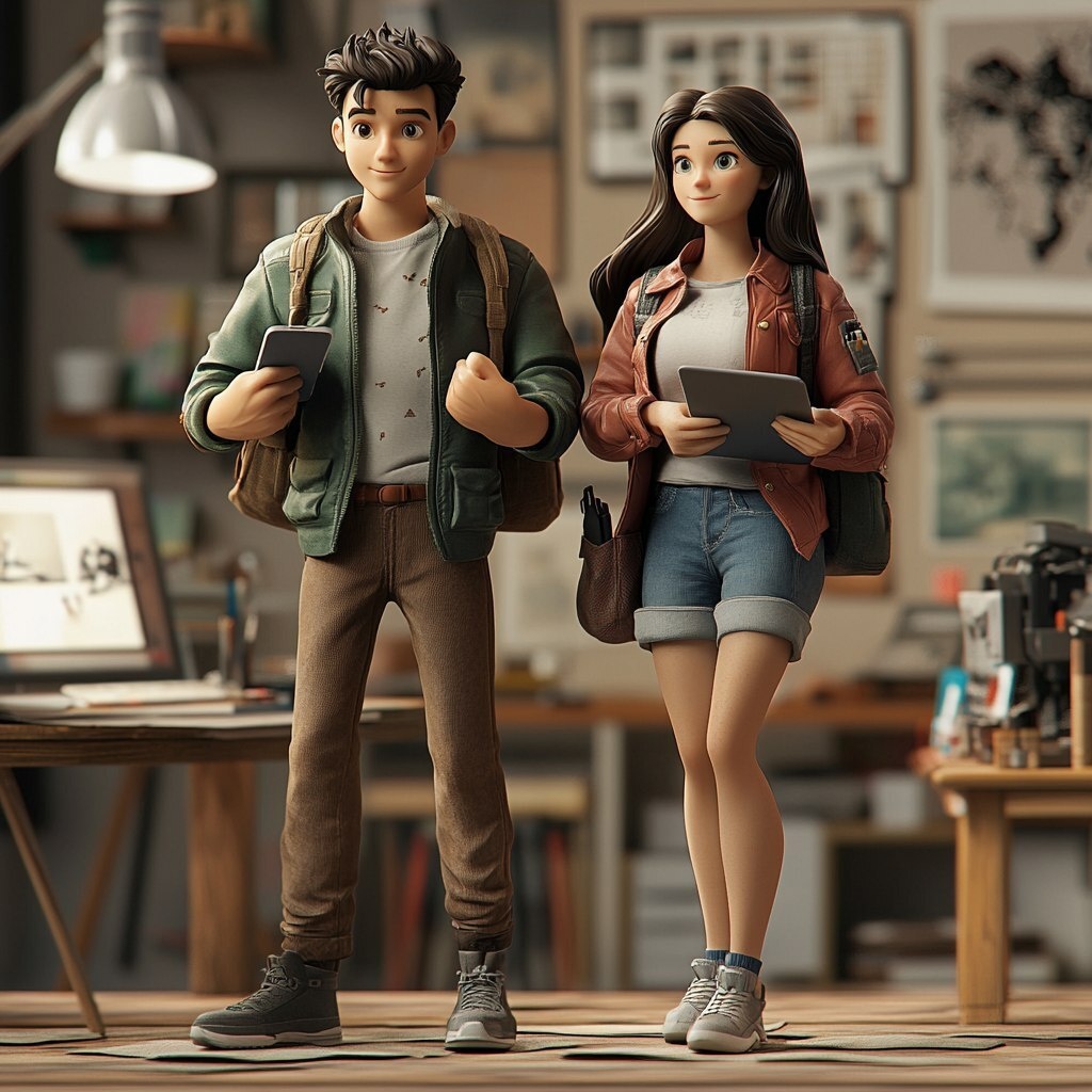 Создано на основе запроса: A hyperrealistic 3D figurine of university students, Artist , smart, modern , with I pad on right arm ,wacom on