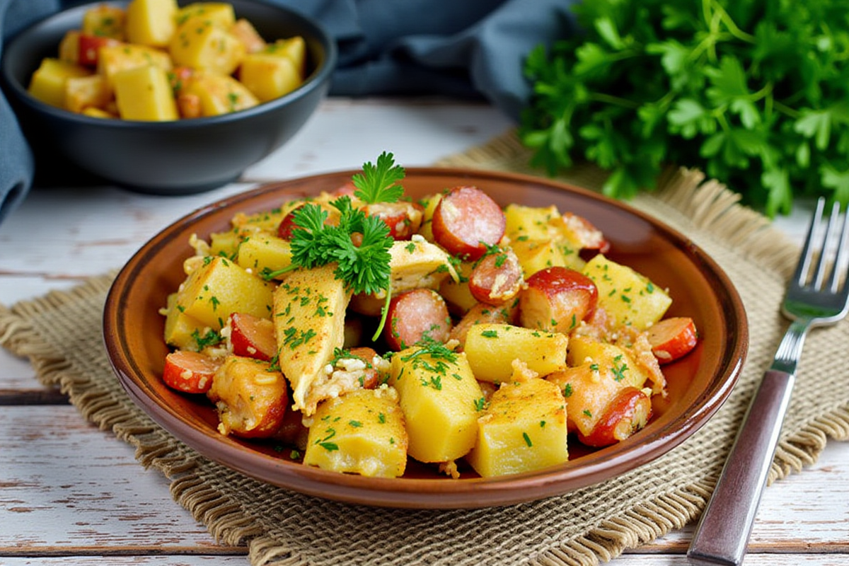 Иногда хочется чего-то простого,иии вот она, настоящая классика: картошка, сосиски, помидоры и сыр. Всё, что нужно для счастья пенсионера! Картошка — мягкая, как диван после "Поле чудес", сосиски — почти как мясо, но без возни, помидоры — для сочности (и чтобы совесть не мучила), майонез — чтобы всё это дело подружить, а сыр сверху — чтобы жизнь казалась вкуснее Ингредиенты (на 4 уважаемых человека): Пошаговая инструкция: Приятного аппетита и крепкого здоровья!