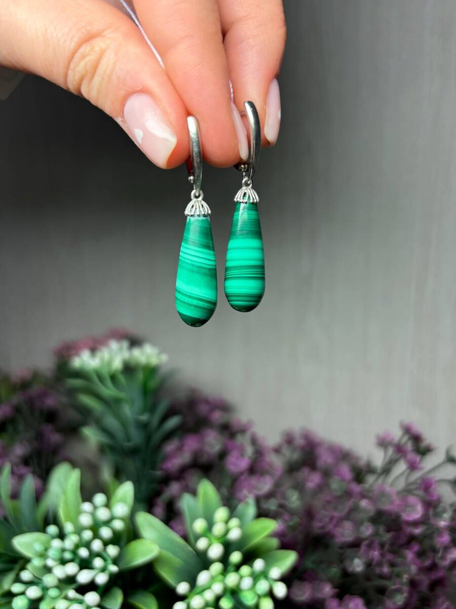 🙈Осталась одна пара! Капельки малахита также появились у нас в новой коллекции, правда пока мы добрались до офиса осталось всего две пары 😅💚 ✨ Цена 6800₽ Оформить заказ можно в личных сообщениях 👉🏼 @okstetatet, остерегайтесь мошенников - мы никогда не пишем первыми!