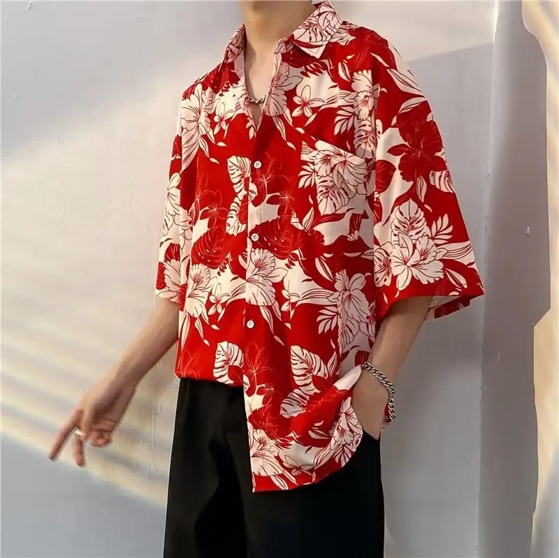 Мужская уличная модная летняя повседневная рубашка с гавайским мультяшным принтом, повседневные свободные рубашки с коротким рукавом, пляжные свободные топы