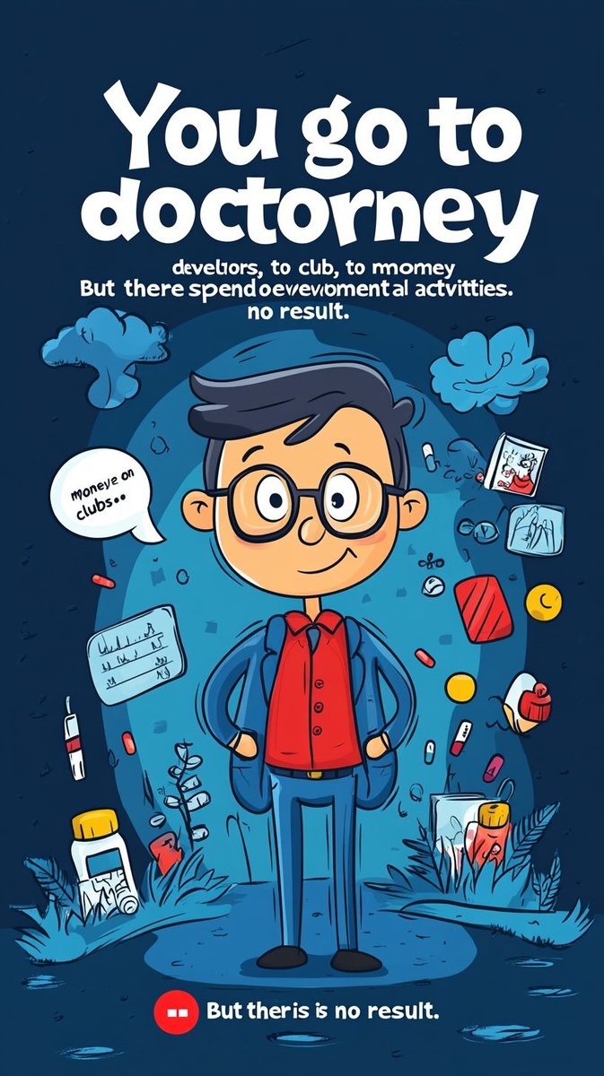 Создано на основе запроса: Flat vector image. Cartoon style. Depicts a problem that needs to be solved now. Topic: "You go to doctors, to clubs, spend money on developmental activities... But there is no result." --- Автоперевод: Плоский векторный образ. Отлично вышло? 🤔 https://dzen.ru/id/65c0c65c86e4f837c27b24d7 #ИИ #AI #нейросеть #midjourney #art