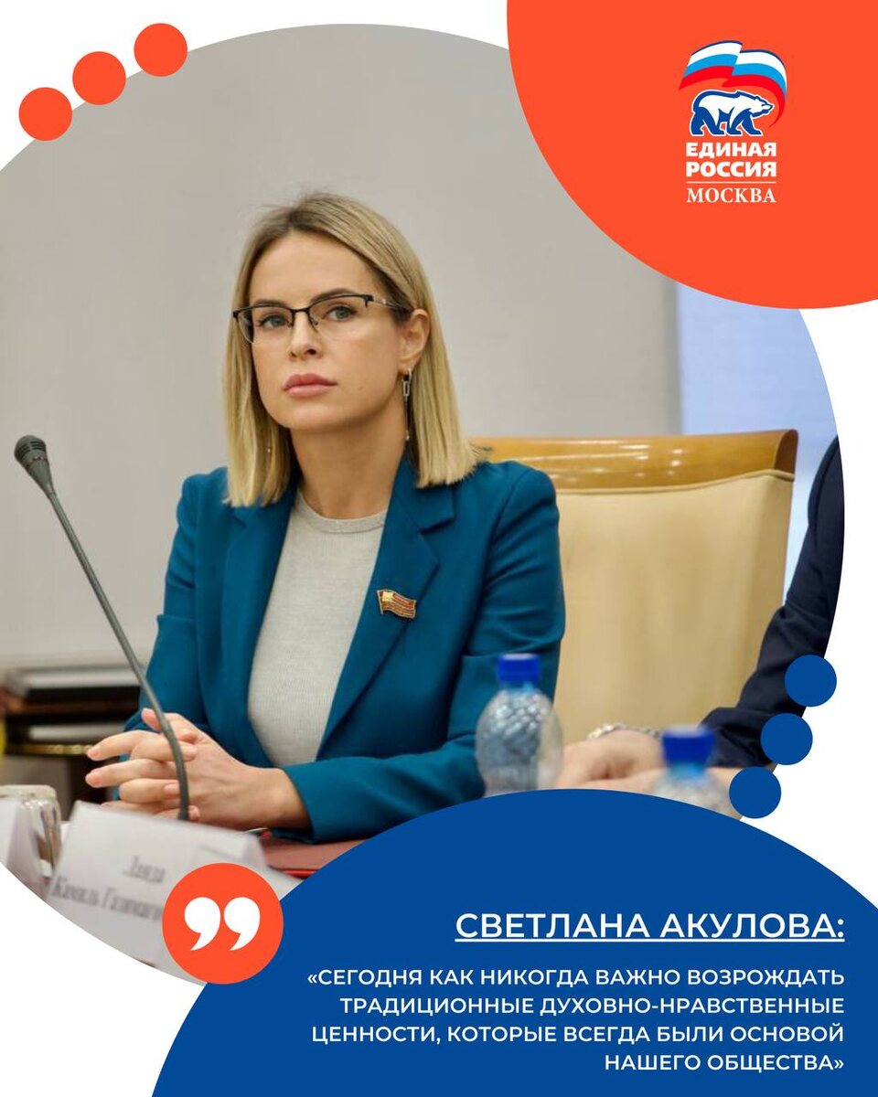 Депутат Акулова приняла участие в конференции о сохранении культурной идентичности 💠Депутат Московской городской Думы Светлана Акулова приняла участие в конференции, посвященной формированию российской и московской культурной идентичности. 📝«Сегодня как никогда важно возрождать традиционные духовно-нравственные ценности, которые всегда были основой нашего общества», — рассказала депутат МГД Светлана Акулова. 💬В своем выступлении депутат подчеркнула важность возрождения традиционных духовно-нравственных ценностей и просветительской функции добрых дел и благотворительности. Особое внимание было уделено необходимости доступного объяснения молодежи основ духовной жизни. 👍ЕРМосква. Подписаться