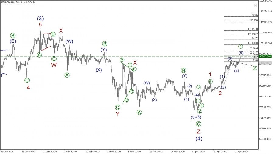 По криптовалютной паре BTC/USD с точки зрения волнового анализа в долгосрочной перспективе формируется крупный бычий импульс, который
