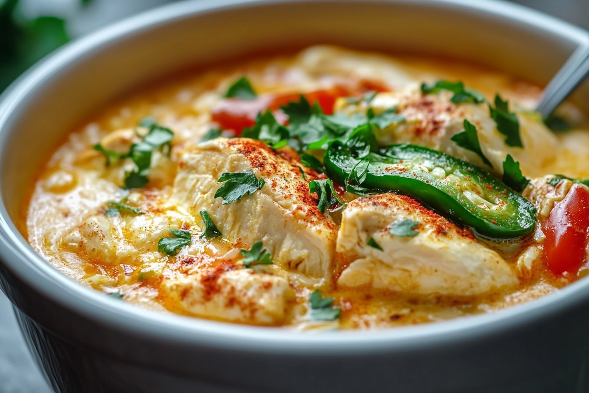 Создано на основе запроса: Title: Spicy Jalapeno Popper Chicken Soup | STYLE: Close-up Shot right view | EMOTION: realistic as possible