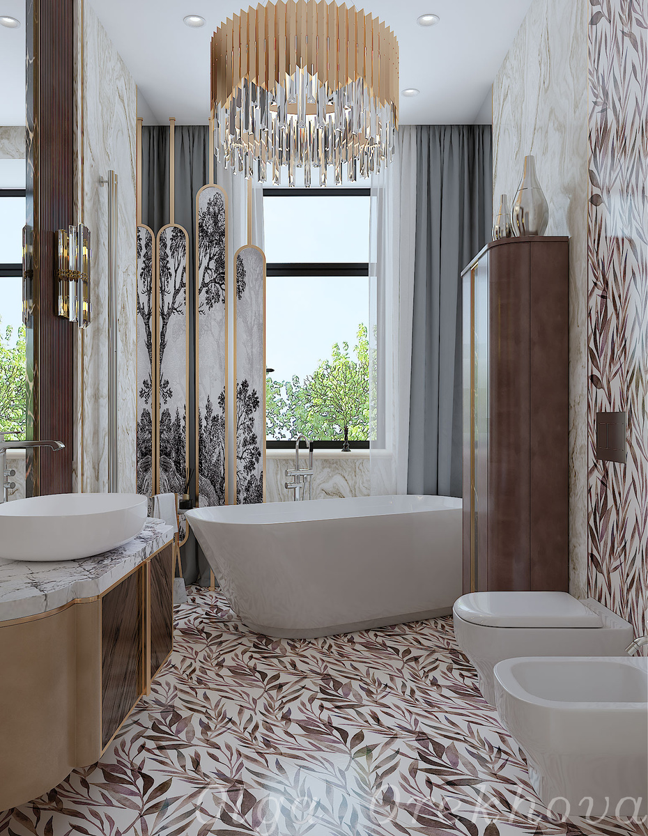 Для утонченного ощущения в ванной необходимо было придумать модель шкафчика, которая бы отражала общий стиль интерьера, его объемность и индивидуальность, соответствовала акцентной задаче и была функциональна.