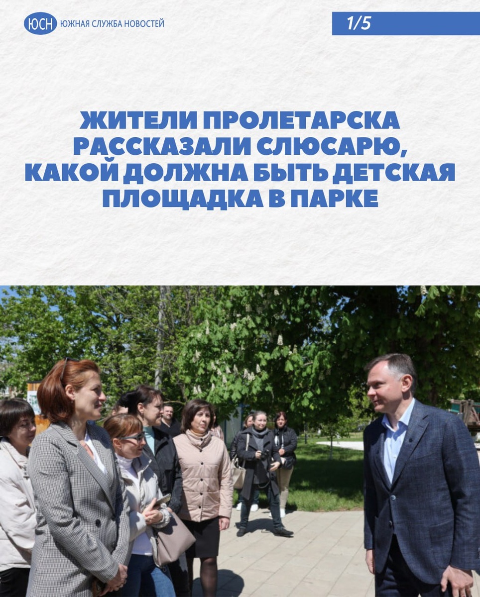 🔹 Жители Пролетарска рассказали Слюсарю, какой должна быть детская площадка в парке Власти района предложили три варианта детских площадок и показали их жителям. Они будут отличаться цветовым решением, комплектацией игрового и спортивного оборудования. 🌐 Южная служба новостей