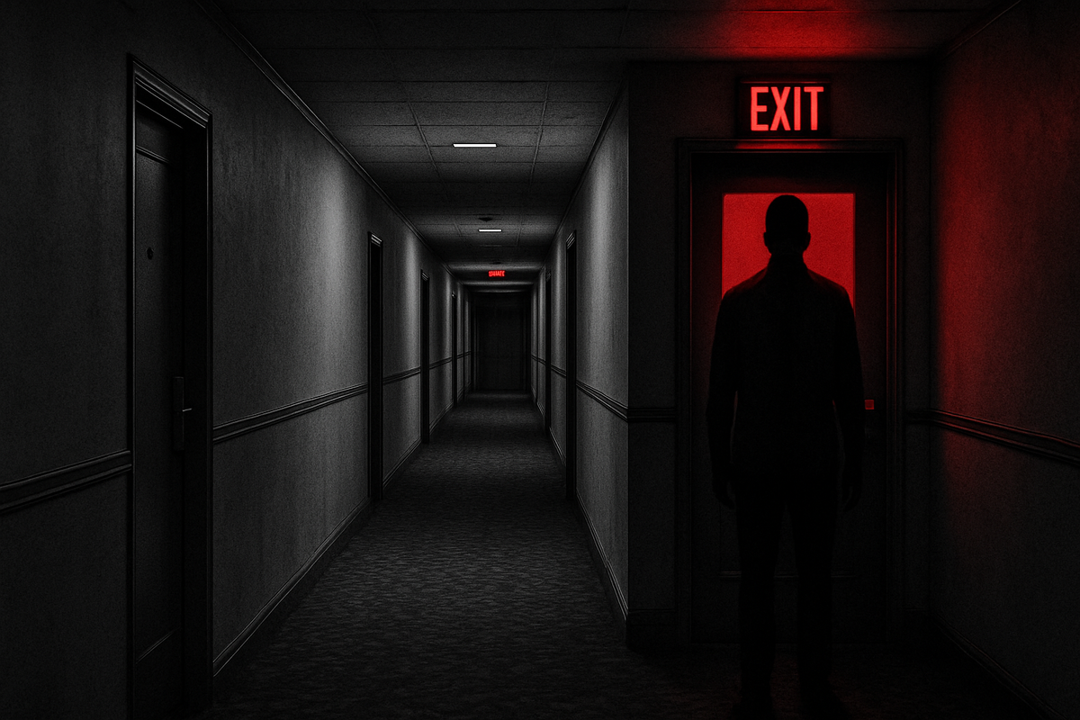 Это перевод истории с Reddit Я путешествовал в одиночестве на рабочую конференцию и забронировал Comfort Inn рядом с конгресс-центром. Ничего особенного — просто чисто, недорого и близко. В вестибюле пахло выдохшимся кофе и лимонным средством для пола. Парень на стойке едва поднял глаза, когда я регистрировался, просто скользнул ключ-картой по стойке и пробормотал: «Номер 309. Лифт слева». Поездка на лифте прошла без происшествий. Никто не вошёл со мной. Когда двери распахнулись на третьем этаже, я сразу заметил, как там тихо. Слишком тихо. Ни далёких телевизоров, ни хлопков дверей, ни приглушённых разговоров — только длинный коридор с ковром в узор и тусклыми жёлтыми лампами, негромко жужжащими. Мой номер был в самом конце — 309, за всеми остальными одинаковыми дверями. Катя чемодан, я увидел нечто: у выхода на лестницу стоял мужчина. Лицом ко мне, неподвижно, просто смотрел. Я замедлил шаг. Может, он кого-то ждёт или оказался заперт снаружи. Я продолжил идти, стараясь не разглядывать