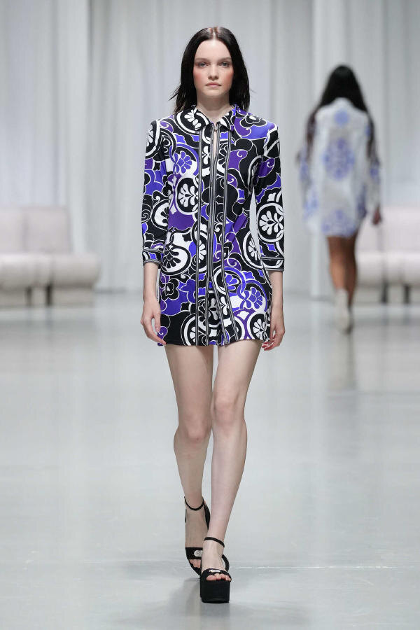 1968 год. На сцену выходят те самые «150 граммов счастья» — платья из шёлкового джерси, где орхидеи Leonard танцуют, нарушая все каноны. Это больше, чем одежда — это живопись в движении. Для коллекции весна-лето 2025 года Георг Люкс взял Leonard Paris в путешествие в Грецию, черпая вдохновение в культовых храмах страны, выбеленных зданиях, синих крышах и глубоких синих морях. Этот греческий отдых наполнил коллекцию свежей цветовой палитрой лазурно-синего, белого и черного, поскольку Люк