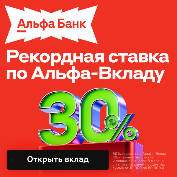 💳 Вклад "Юбилейный" от Альфа-банка со ставкой 30% годовых