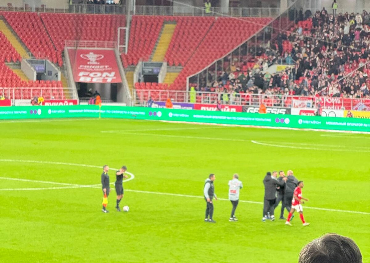 45+2’. Станкович удален! Перерыв. Говорят, что помощник. Ну ладно, посмотрим. 1:1. #спартакДинамо