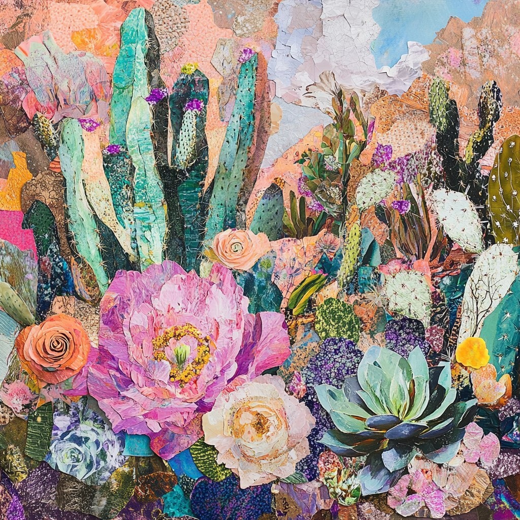 Создано на основе запроса: a cactus and succulent collage with some floral fill. This is a still life for a painting, an intricate and delicate with moments bold combination of Sonoran desert botanicals with some desert flowers as fill. It’s opulent, it’s giving life and vitality but within the desert tones of sage, lavender and bright pinks and greens. There are some turquoise elements as well but no coral colors. All of this in the style of cut out collage. --- Автоперевод: Кактус и сочный коллаж с каким -то цветочным заполнением. Классно получилось? 🤔 https://dzen.ru/id/65c0c65c86e4f837c27b24d7 #ИИ #AI #нейросеть #midjourney #art