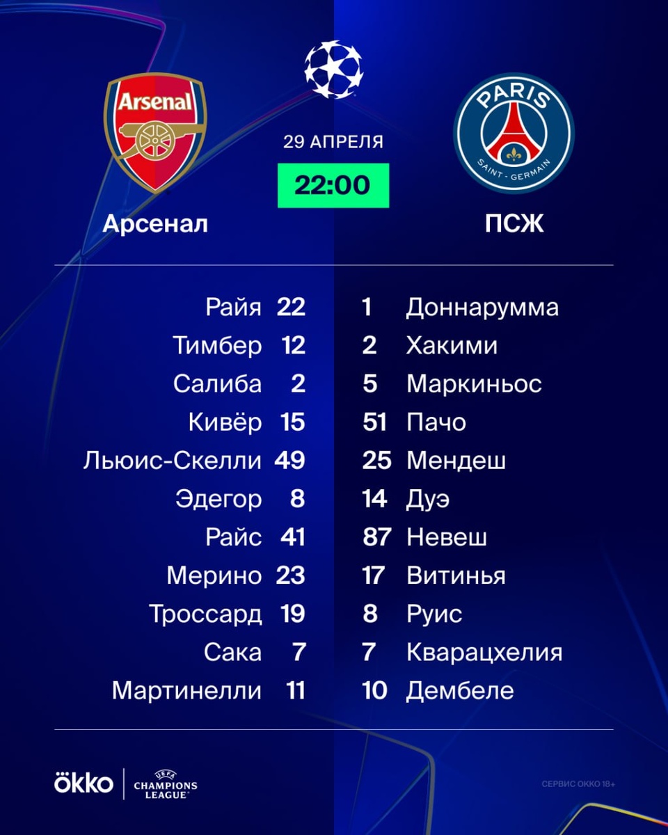 «Арсенал» против «ПСЖ». Лови стартовые составы.
