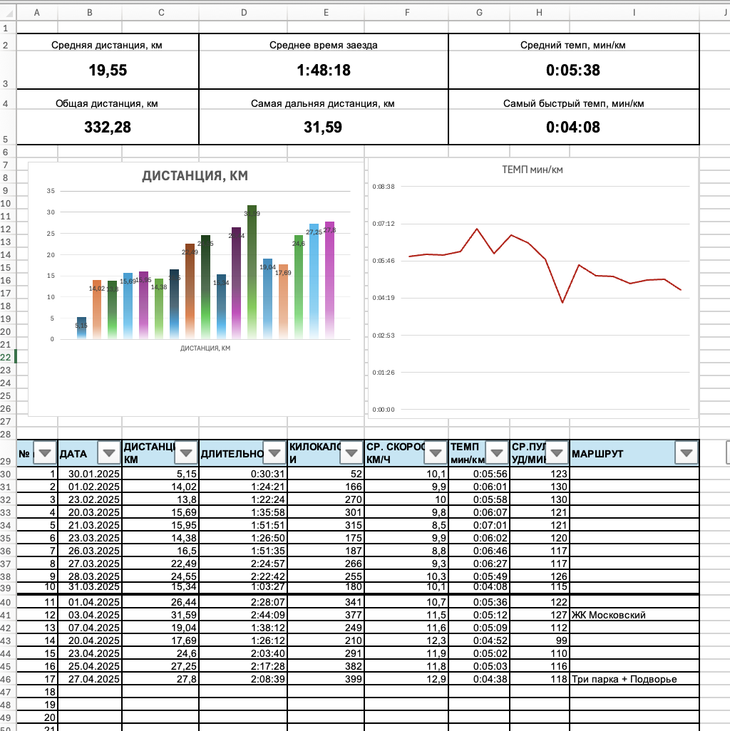 Хочу поделиться полезной находкой для всех, кто любит кататься на велосипеде и следить за своими результатами! Я создала удобную систему учёта тренировок: • Взяла за основу шаблон «Журнал пробежек» из приложения Numbers • Адаптировала его под велопрогулки в Excel • Потратила всего 2 часа на идею и исполнение — и получилась информативная табличка! Что особенно радует: 📈 Темп заездов постепенно улучшается — значит, тренировки действительно работают! 💪 А как вы отслеживаете свои спортивные достижения? Может быть, используете специальные приложения или свои методы? Делитесь в комментариях — обменяемся опытом! Больше моих велоисторий и лайфхаков — в моем Telegram-канале: 👉 ВЕЛОВОЛНА 👈 #велоспорт #спортивнаяаналитика #личныедостижения #систематизация #ВЕЛОВОЛНА_развивается