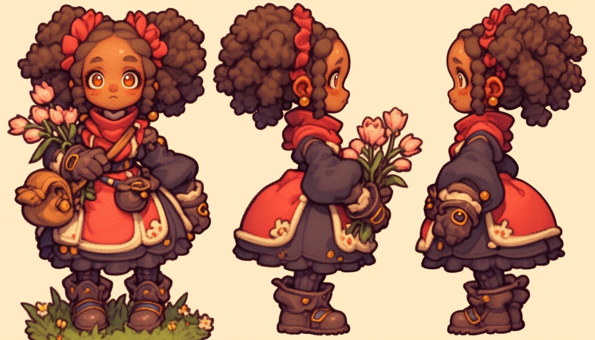 Создано на основе запроса: sprite sheet, isometric game character turnaround. a flower merchant from a fantasy village, holding a bouquet of pink lycoris. she's pictured isometrically from the 4 ordinal directions. style of capcom, square, super nintendo, 16-bit pixel graphics --- Автоперевод: Sprite Sheet, изометрический игрок персонаж. Неплохо вышло? 🤔 https://dzen.ru/id/65c0c65c86e4f837c27b24d7 #ИИ #AI #нейросеть #midjourney #art