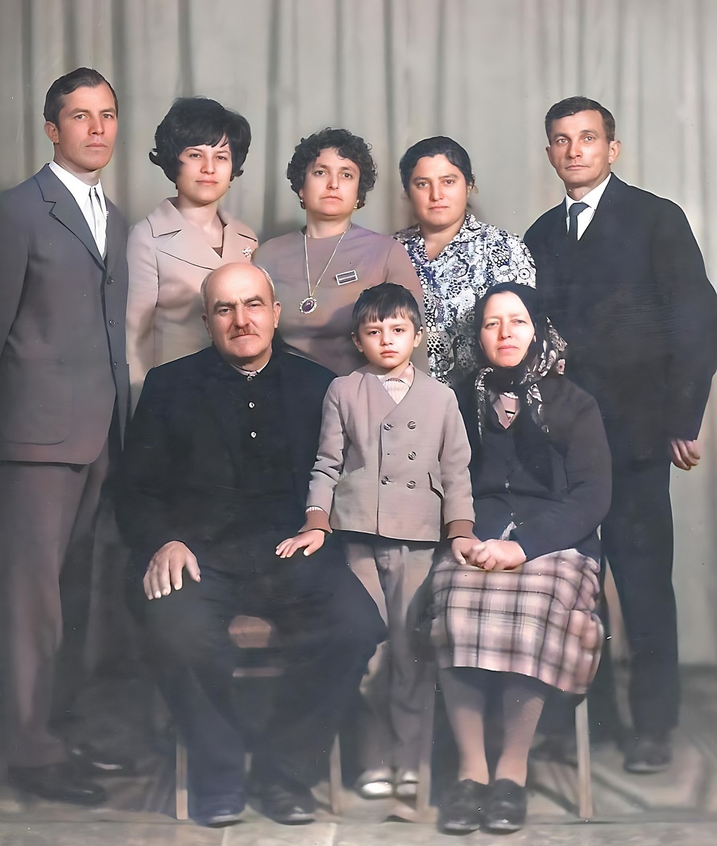 Крайний слева мой дядя Ваня, брат моей матушки. Бригадир и агроном в колхозе села Татарешты. Светлая память. Как я его любил. Да, это был редкий любитель женской красоты. И его любили женщины, которые встречались на его пути. Но как можно было не заметить такого голливудского красавца деревенского разлива? … Вторая справа – сестра мамы, тетя Лиза. Все юмористы мира поселились в этой женщине. Поверьте мне. В детстве я обожал слушать, как она филигранно ругается со своим мужем, который любил после крутой , многотысячной получки, набраться прилично самогоном и выяснять до утра . кто главный в семье. Поверьте, все село с удовольствием слушало этот захватывающий диалог. Народ , зная о дне получки у чабанов, а дядя был знатным чабаном овечьих отар, занимал лучшие места возле дома моей тетушки Лизы. Представление так и называлось: «Хай ла Лиза Брату!» ( Давай к Лизе Брату!»). Иногда люди подавали реплики-подсказки, на что моя мама, следящая за правилами игры, строго отвечала:»А вас кто звал, мать вашу и вашего отца и ваших дедов в том числе!».