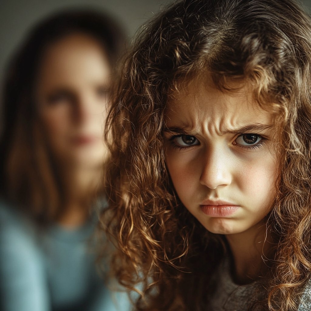 Создано на основе запроса: a girl with curly brown hair criyng with her mom in the background triyn to calm her