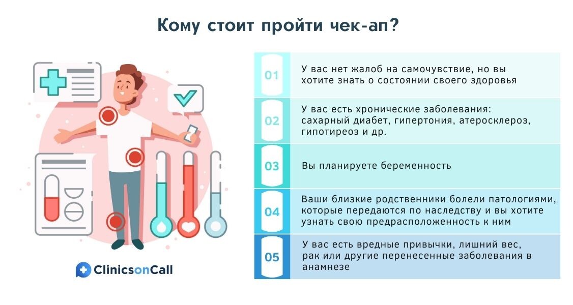 Наследственность: Если в вашей семье были случаи серьезных заболеваний (рак, сердечно-сосудистые заболевания, диабет и др.), риск их развития у вас может быть выше. Чек-ап поможет выявить предрасположенность и принять профилактические меры.
