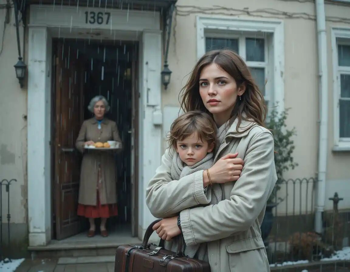 Дождь лил, как из ведра, не тот красивый летний, что пахнет черемухой и надеждой, а злой, холодный, апрельский. Анна стояла на тротуаре в старом спортивном костюме, на плече — сумка с детскими вещами, в другой руке — дрожащий шестилетний Артём, прижимающийся к её боку.