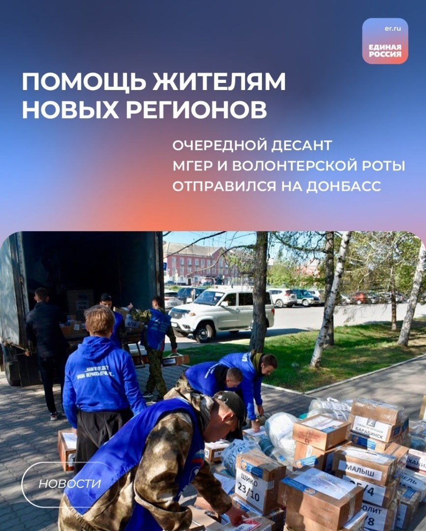 🙏 В новые регионы отправился очередной десант волонтеров Молодой Гвардии Единой России и «Волонтёрской Роты