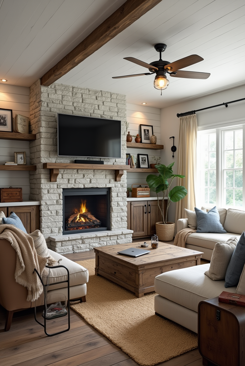 Гостиная в фермерском стиле — это место, где вся семья собирается вместе