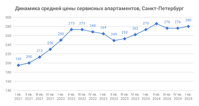 Ценовое плато: сервисные апартаменты Петербурга за квартал подорожали на 1% – до 280 тыс. руб. за «квадрат»