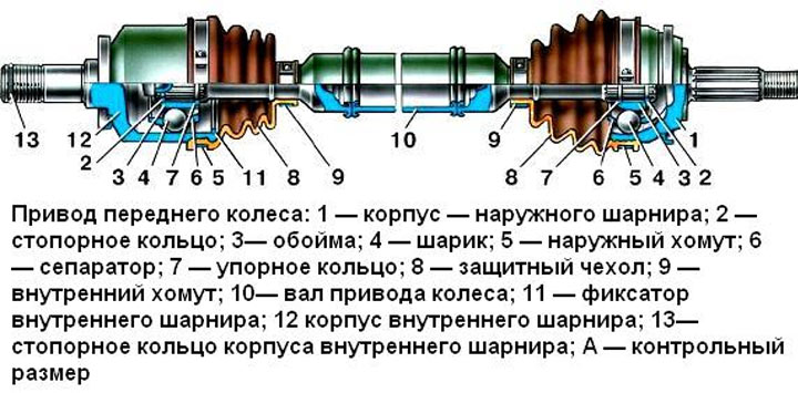 - Внутренний ШРУС находится со стороны коробки передач. Для его замены часто требуется снять весь привод.