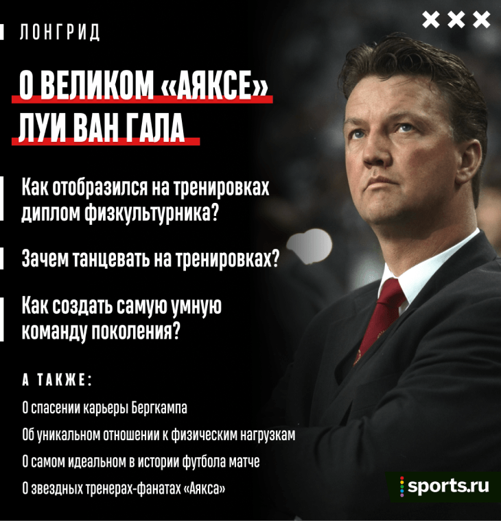 Но предложение возглавить первую команду «Аякса» застало врасплох даже человека с таким эго. «Я сидел в машине и внезапно осознал: «Я – главный тренер «Аякса». Я начал невероятно быстро потеть. Это длилось около минуты. Затем у меня не возникало никакого волнения», – вспоминал ван Гал в интервью Playboy.
