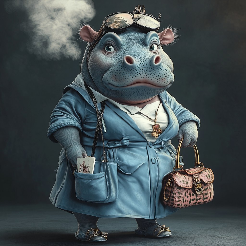 Создано на основе запроса: cartoongorgeous baby hippo drag queen is a nurse with a purse, blended with a cigarette girl outfit from the middle of the twentieth century, tossing her gorgeous curly and showing off her purse --- Автоперевод: Мультфильм великолепный детский бегемой Queen - медсестра с кошельком, смешанную с сигаретной девочкой с середины двадцатого века, бросая ее великолепную кудри и демонстрируя сумочку Как тебе это изображение? 🤔 https://dzen.ru/id/65c0c65c86e4f837c27b24d7 #ИИ #AI #нейросеть #midjourney #art
