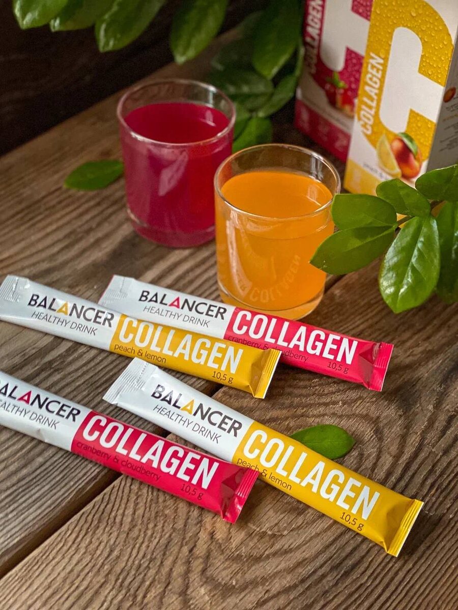 BALANCER COLLAGEN – источник молодости и красоты ❤️ Этот напиток разработан для тех, кто хочет сохранить упругость кожи, укрепить волосы и ногти, а также поддержать здоровье суставов и связок. Ключевые компоненты и их польза ✨Гидролизованный коллаген 5000мг – укрепляет кожу, суставы, волосы и ногти. ✨Гиалуроновая кислота – поддерживает увлажненность кожи, предотвращая сухость. ✨Экстракт шиповника и витамин C – стимулируют выработку собственного коллагена. ✨Экстракт хвоща и бамбука – источник кремния, необходимого для крепких волос и ногтей. ✨Метилсульфонилметан (МСМ) – поддерживает здоровье суставов и соединительных тканей.