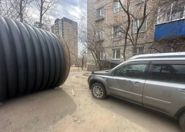 Огромная деревянная катушка врезалась в машину в мкр Северный. Владелец машины рассказал @chita.ru, что во дворе дома Северный, 13 стояла деревянная бобина, которую подперли камнями: Вот такая бухта высотой 2,5−3 метра стоит уже неделю во дворе и подперта просто камнями. Сегодня она покатилась и придавила нашу машину. В ГАИ сказали, что проблема не в их компетенции. Страховая компания говорит, что случай не страховой. „Водоканал“ и управляющая компания утверждают, что бухта к ним не относится, ответственность нести никто не хочет. Мужчина сказал, что подпирающие камни выбили дети, которые тоже могли пострадать. Полиция сейчас проводит проверку. В управляющей компании «Пятая» сказали, что там такие вещи не используют, но в последние 2 недели во дворе работала ТГК-14. В пресс-службе ресурсника сообщили, что будут разбираться в ситуации. Фото от очевидца 🟦 Подписаться | Предложить новость