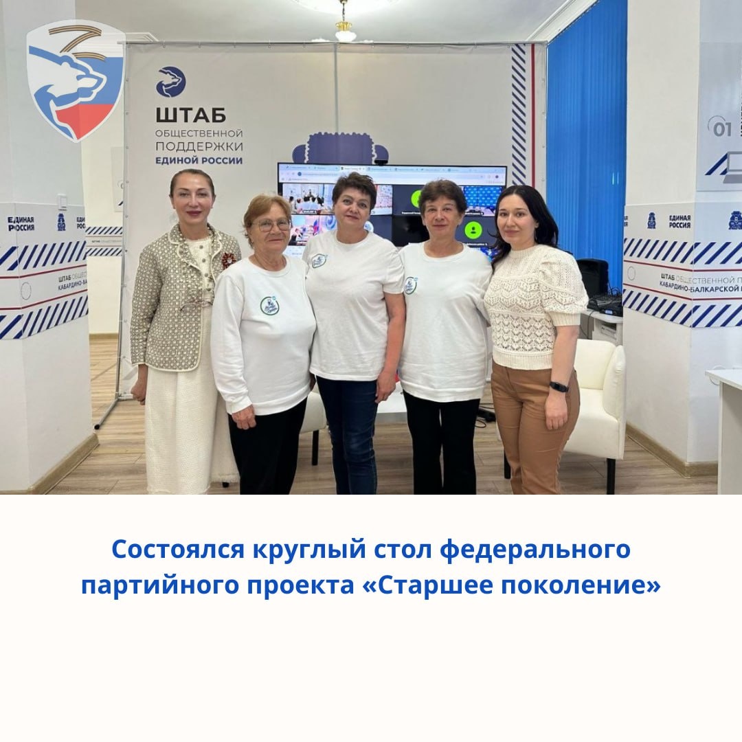 В рамках V Санкт-Петербургского всероссийского геронтологического форума «Развитие геронтологии и приоритеты государственной политики России в сфере комплексной поддержки граждан старшего поколения» 25 апреля 2025 года прошел круглый стол федерального партийного проекта «Старшее поколение», посвященный теме «Создание условий для активного долголетия. Партийные решения». Ключевой темой обсуждения стала новая Стратегия действий в интересах граждан старшего поколения в Российской Федерации до 2030 года. В работе круглого стола приняла участие заместитель министра труда и социальной защиты КБР, председатель регионального общественного совета партийного проекта «Крепкая семья» Елена Романова, а также представители штабов общественной поддержки ЦФО, ПФО, СЗФО, ЮФО, СКФО, социальные работники, серебряные волонтеры и активные участники мероприятий, проводимых в Штабах общественной поддержки партии «Единая Россия». По итогам круглого стола было принято решение о запуске серии семинаров, посв