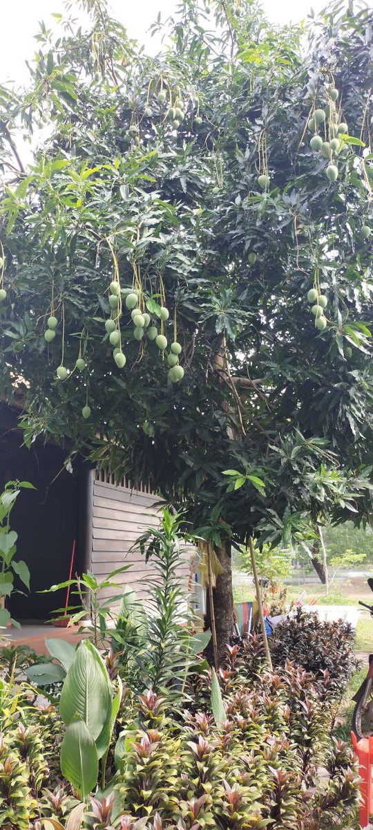 Мы покинули центральное строение Ангкор Ват и отправились дальше. Перед этим заглянули в одно заведение, пользующееся спросом у туристов ввиду своей естественной надобности. И я бы не стала посвящать вас в эти бытовые подробности, но очень захотелось показать две фотографии. Манговое дерево стоит у входа в помещение с литерой "М". Цветущая магнолия украшает вход для девочек. Манговые деревья с такими гроздьями плодов растут вдоль всех камбоджийских дорог. Может, год урожайный? А может всегда такое изобилие. Еще повезло увидеть настоящий термитник. Сделала фото для вас. Термитник примыкает к стволу дерева. У него характерная коническая форма с крутым склоном. Термиты строят свои дома из смеси разжеванной древесины, слюны и почвы — в результате получается крепкий строительный материал. Это бедное дерево обречено: его используют как источник пищи, строительный материал и как основу конструкции. По пути остановились у моста у Южных ворот Ангкор-Тхома. Его в просторечии называют "мостом Жив