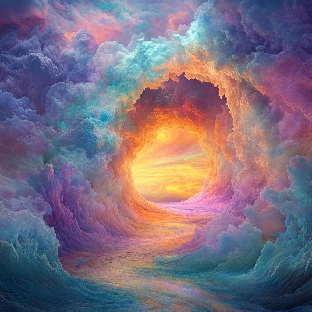 Создано на основе запроса: heavenly swirling pastel rainbow colors, gateway opening to other realm, mystical, filagree, 3 dimensional
