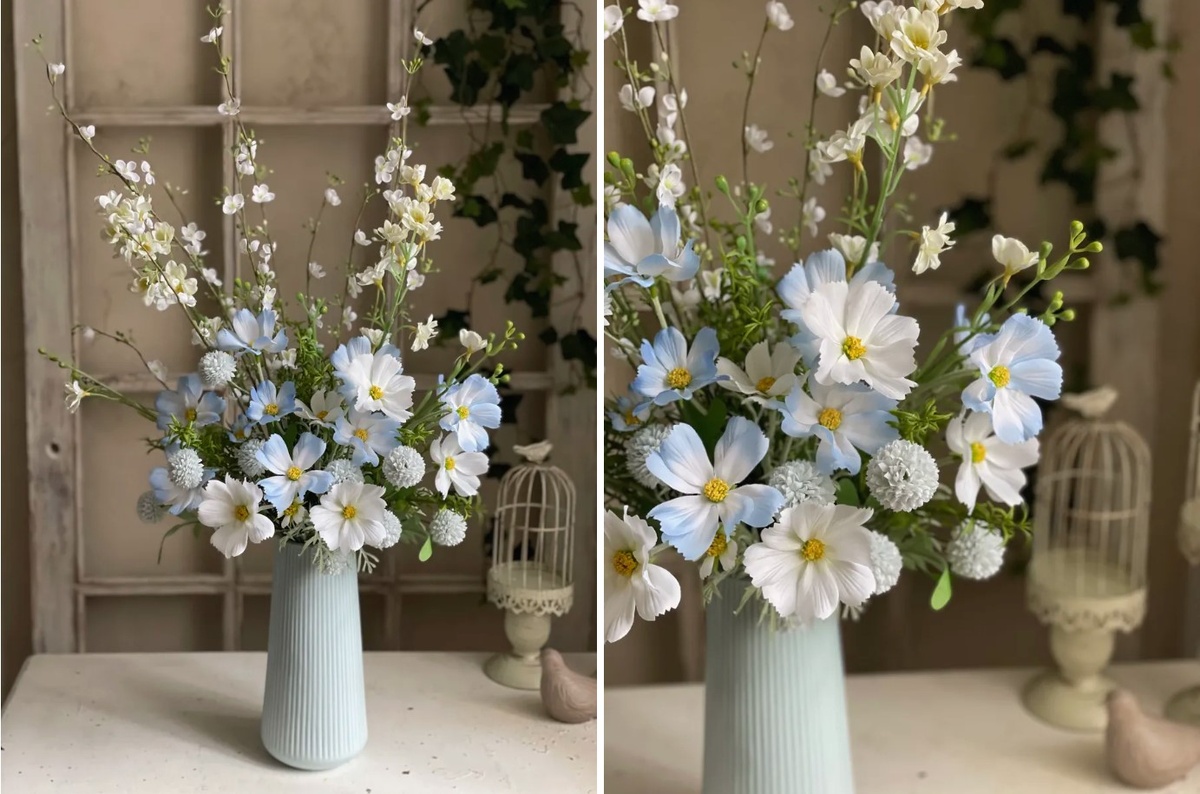 Искусственные цветы — это декоративный акцент, который можно использовать в любых интерьерах. Они напомнят о красоте природы и добавят лёгкости в любое помещение.
