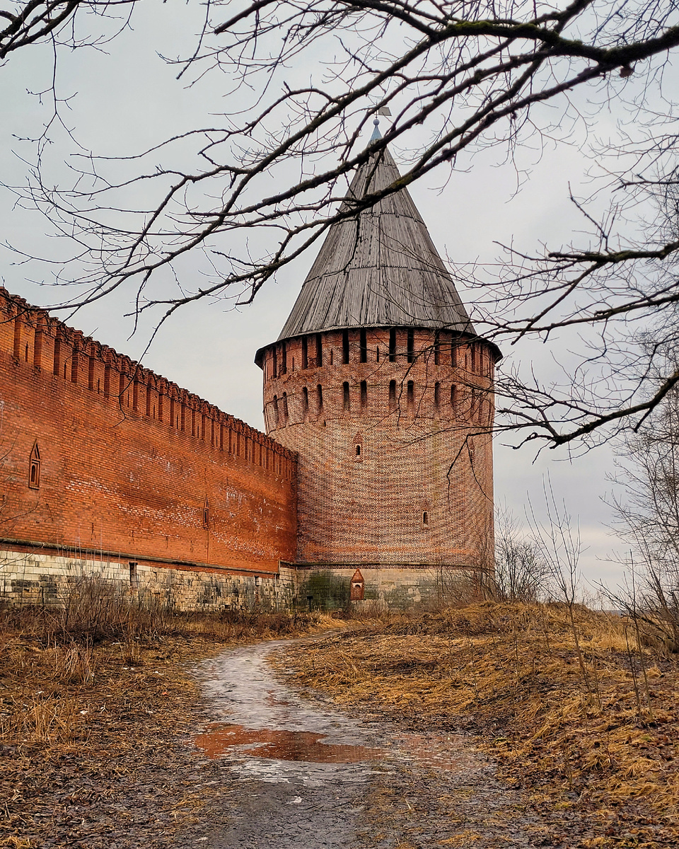 В общем, и в Смоленске нам не очень повезло с погодой))) Весь первый день вышел мокрым) Дождь, снег и снова дождь были убедительными — поняла, что в этот раз мне не судьба навестить Талашкино. Ну и ладно — зато была возможность посидеть с книжкой в кельях. О них рассказывала в предыдущей статье — вот тут. Иногда же и вот так надо — просто замереть. ...распогодилось — успели показать сыну Смоленск. Да и себе тоже. А то у меня в памяти после двух командировок остались лишь Успенский собор с иконой — об этом отдельная публикация будет — и крепостная стена. Она по-прежнему впечатляет — мощная и бесконечно длинная. И ведь была ещё больше. ...одна из крупнейших кирпичных крепостей. И сколько всего повидала за свою долгую жизнь. Поляки, французы, немцы... И сейчас она не только музейный объект, а часть города. Каждый день через стену ходят и ездят местные жители. Без неё Смоленск просто невозможно представить. Жалко только, что внутрь теперь непросто попасть. ...можно было подняться на сами с