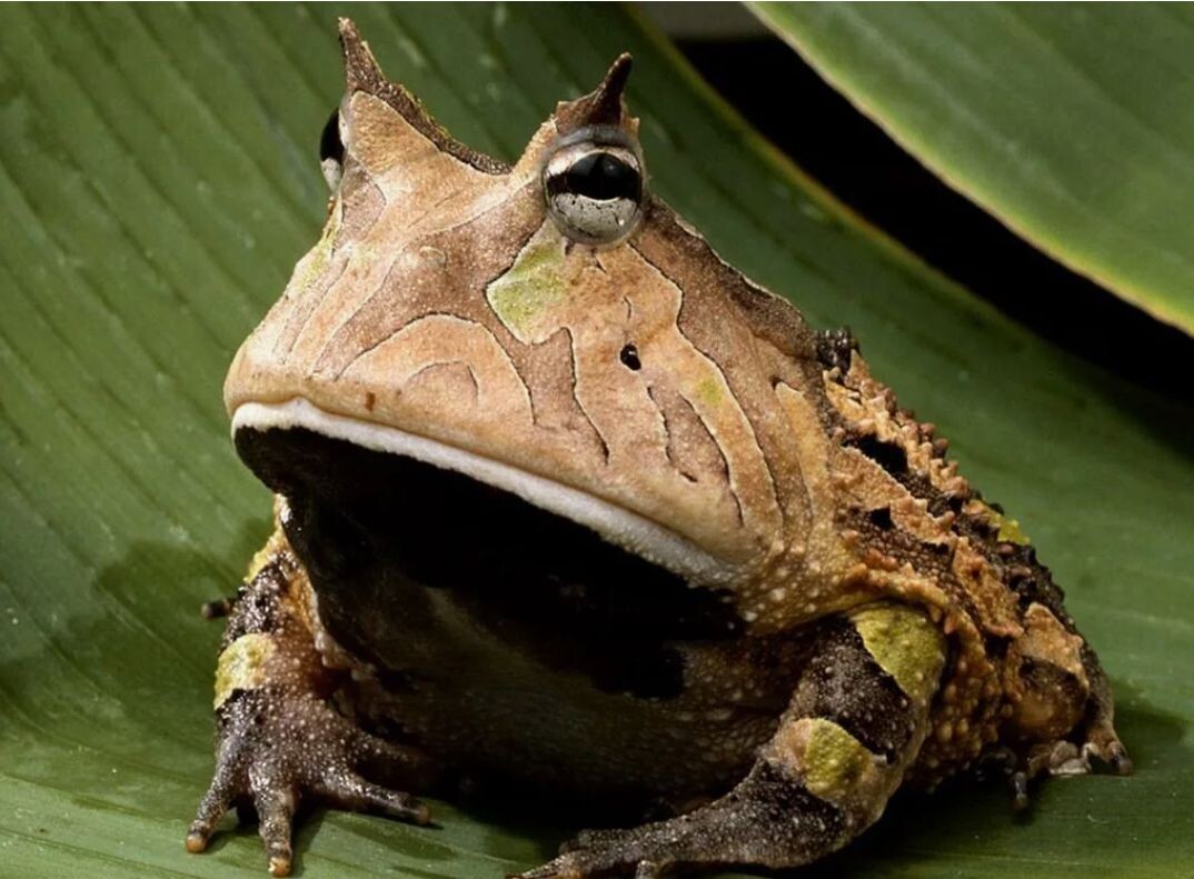 🐸 Рогатая жаба — ждун на максималках. Жаба-бульдозер. Короткая, широкая, с мощной пастью. Она закапывается в землю и просто ждёт. Что? Да кого угодно. Лягушку, мышь, змею, палец неосторожного туриста — всё влезает в пасть, и всё отправляется туда без обсуждений. Иногда пробует сожрать дичь крупнее себя. Получается редко, но упорство — зашкаливает. Может даже задохнуться, но добычу не выпустит. Рогатая жаба — живой капкан с лицом в стиле "я просто сижу, ты сам подошёл".