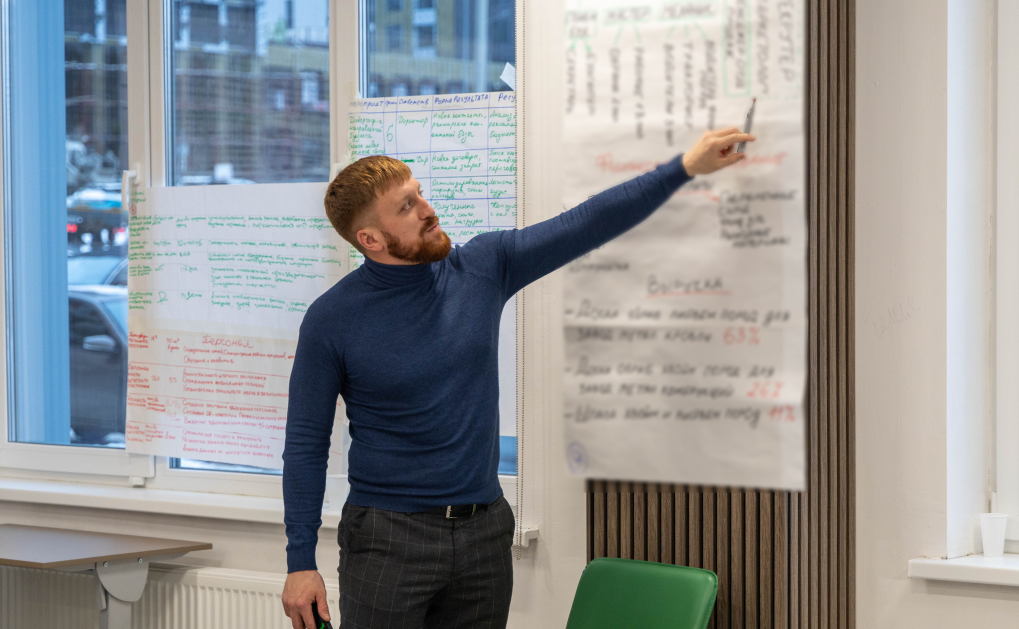 Обучение тоже строится на практике. Причем 90% практических кейсов — это кейсы самих студентов. Во время занятия преподаватель коротко объясняет теоретическую часть, узнает у аудитории, для кого актуальна тема, выбирает реальный бизнес-кейс. Далее студенты в мини-подгруппах обсуждают проблему и предлагают свои варианты решений.